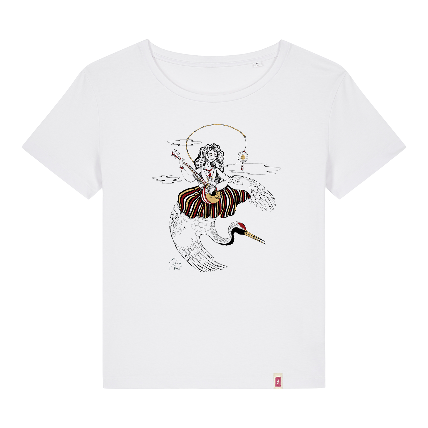 La camiseta "La Maga", diseñada por la artista arafera Marie de la Rue, es una hermosa fusión de arte y cultura canarias y de regiones más alejadas como Japón o India. Ideal para quienes buscan un estilo femenino interesante y consciente, algodón orgánico y corte femenino relajado.